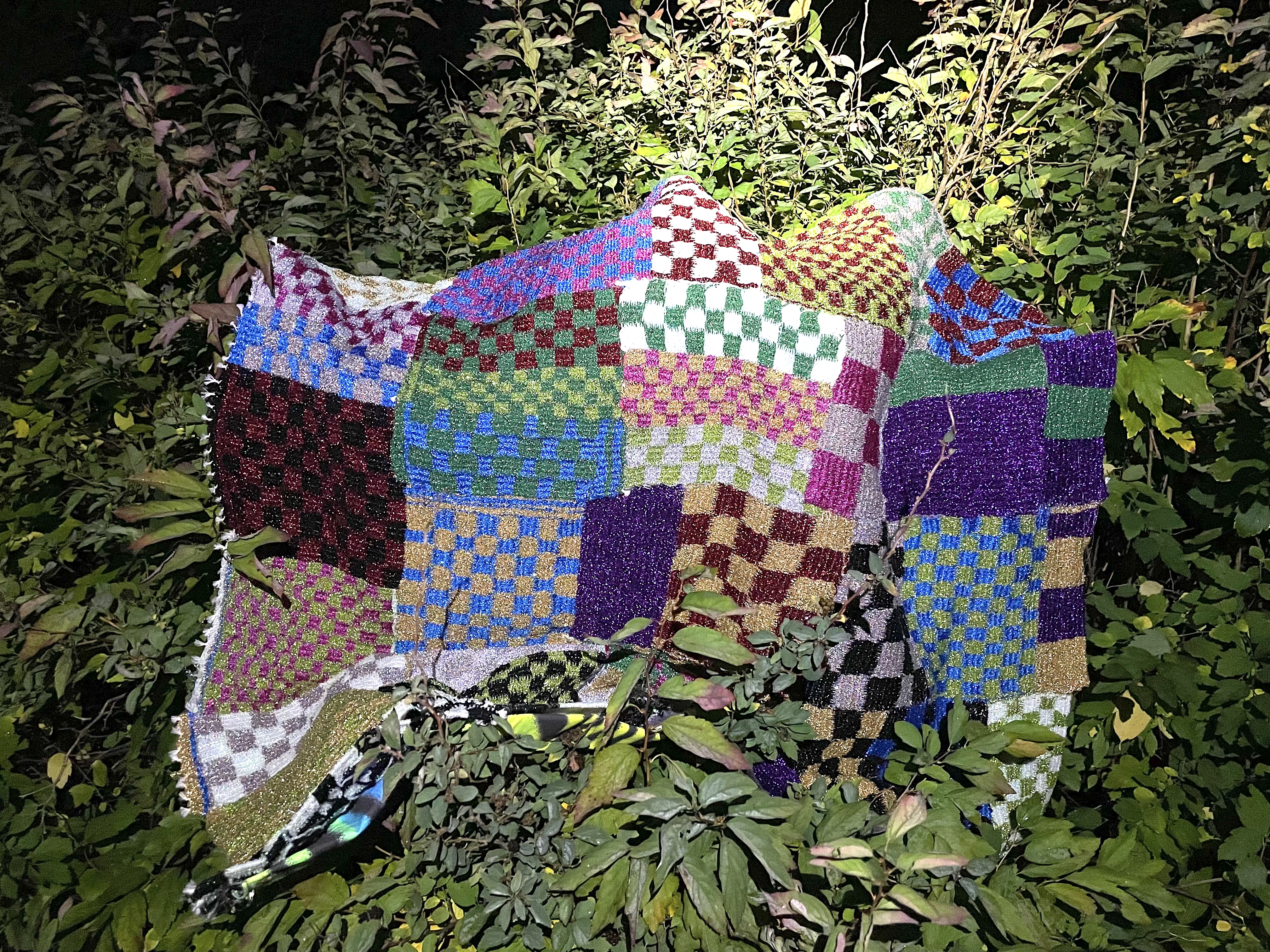 She molds sounds, knots threads and glues together swaying collages of objects. Psychophysical weaves are often constructed on the terms of materials – glitter, candy and “tilpehööri” are part of the art making. Different thread techniques are combined in rya rugs and tapestries in a craft-like manner. Her work is fueled by thoughts about the simple hallucinations formed by geometric patterns, the esotericism of traditional textiles and the beauty of nothingness created by random groping. She has also been part of two different working groups that ran Sorbus gallery in Helsinki and K17 – Taiteen ja ekologian koetila in Sipoo.